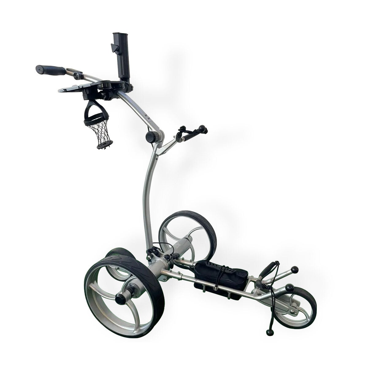 Mooie aluminium golftrolley met een moderne en strakke uitstraling in grijs, zwart of wit. Onze trolleys zijn gemaakt van hoogwaardig aluminium, dat wind- en weerbestendig is. Twee krachtige motoren in de as zorgen ervoor dat u makkelijk en moeiteloos een golfronde kunt lopen. Met de lithium accu loopt men 36 holes. Batterij indicator op bedieningspaneel + USB aansluiting. De trolley is makkelijk dubbel te vouwen en is daarom als een compact pakket mee te nemen en neemt weinig ruimte in de auto of locker op de club. Kortom, een genot om mee te lopen en vele anderen kunnen dat beamen.