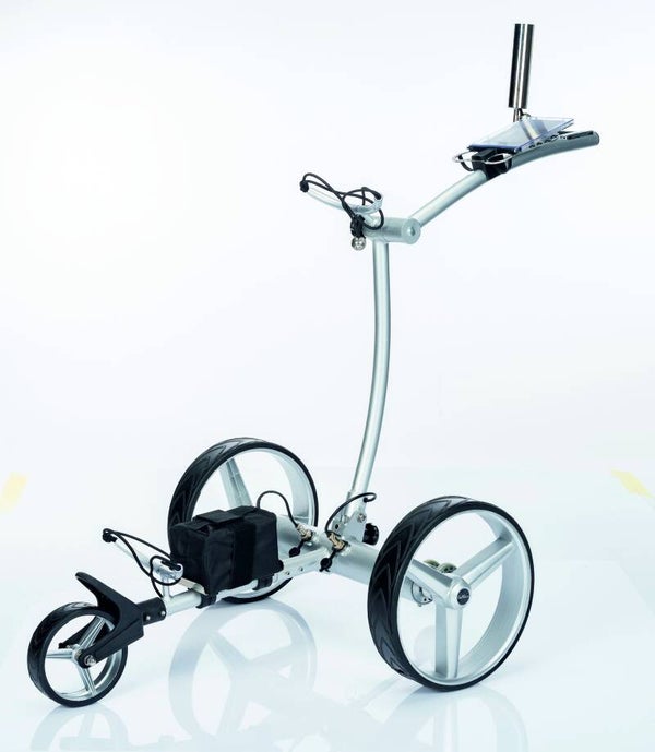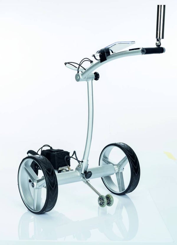 Prachtige golftrolley met een modern en strak uiterlijk. Onze trolley's zijn gemaakt van hoogwaardig alumiunium, wind en weer bestendig. Twee krachtige motoren in de as zorgen ervoor dat u makkelijk en moeiteloos een golfronde kunt lopen. Met de lithium accu loopt men 36 holes. De trolley is makkelijk dubbel te vouwen en is daarom als een compact pakket mee te nemen en neemt weinig ruimte in de auto of locker op de club. Kortom, een genot om mee te lopen en vele anderen kunnen dat beamen.